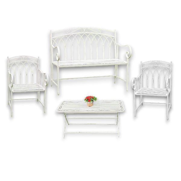 sl004 - Salotto modello Belle Époque in ferro lavorato decapè bianco composta da:
