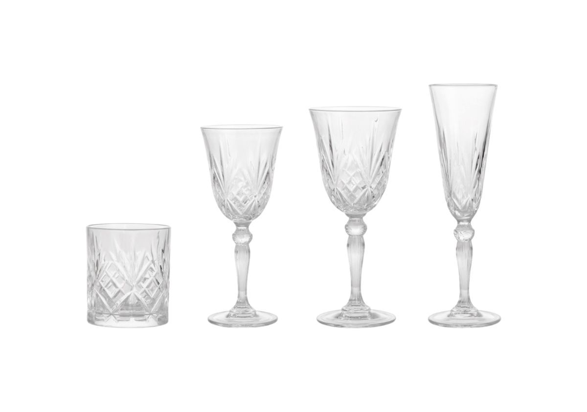 La scelta del servizio di bicchieri non riguarda solo il tipo di bicchiere, ma anche lo stile. In un ricevimento, è essenziale che i bicchieri si accordino con l'estetica complessiva: è impensabile, ad esempio, utilizzare bicchieri moderni in un contesto classico, e viceversa.